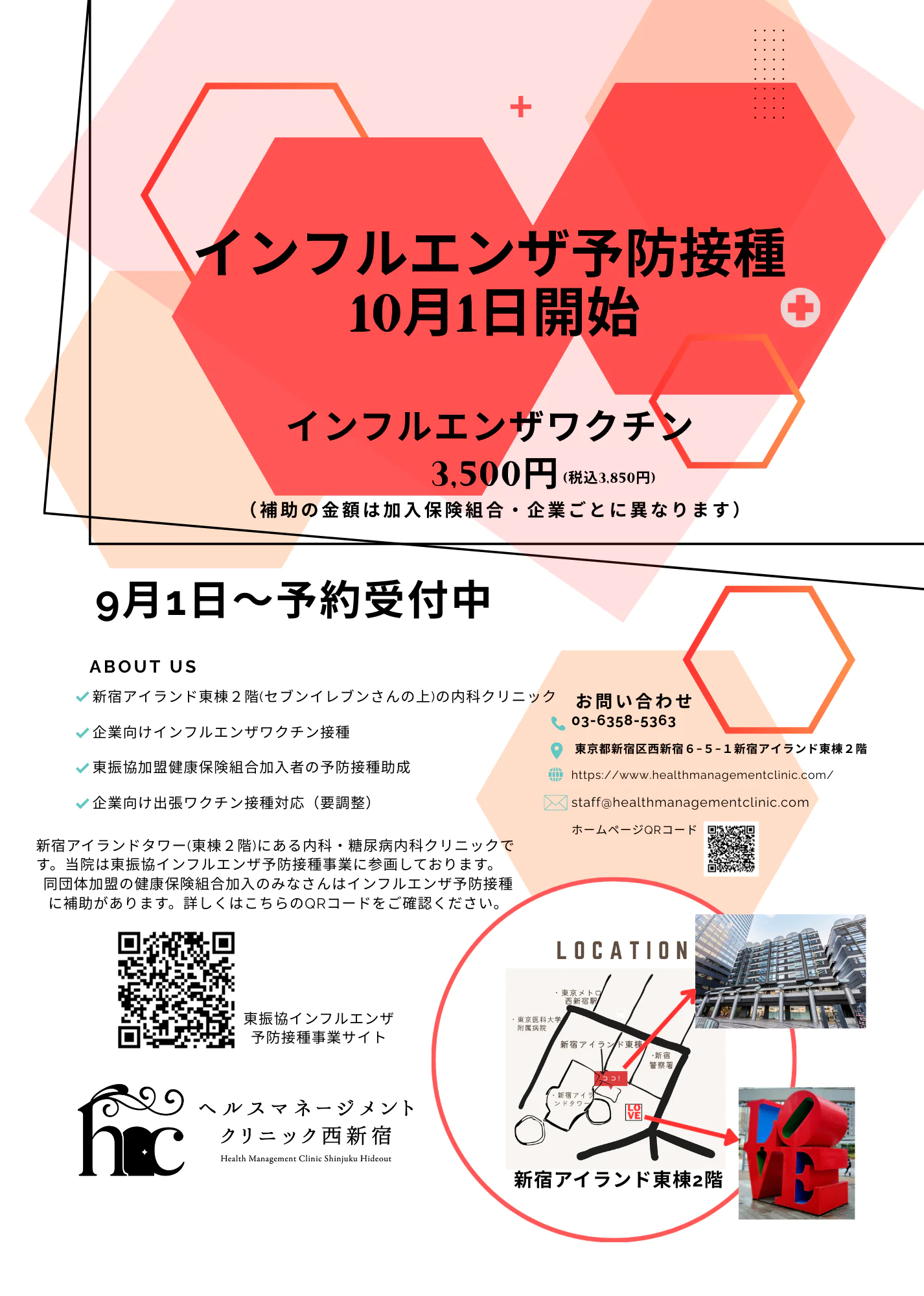 - 10月1日からインフルエンザワクチン接種(予防接種)が始まります