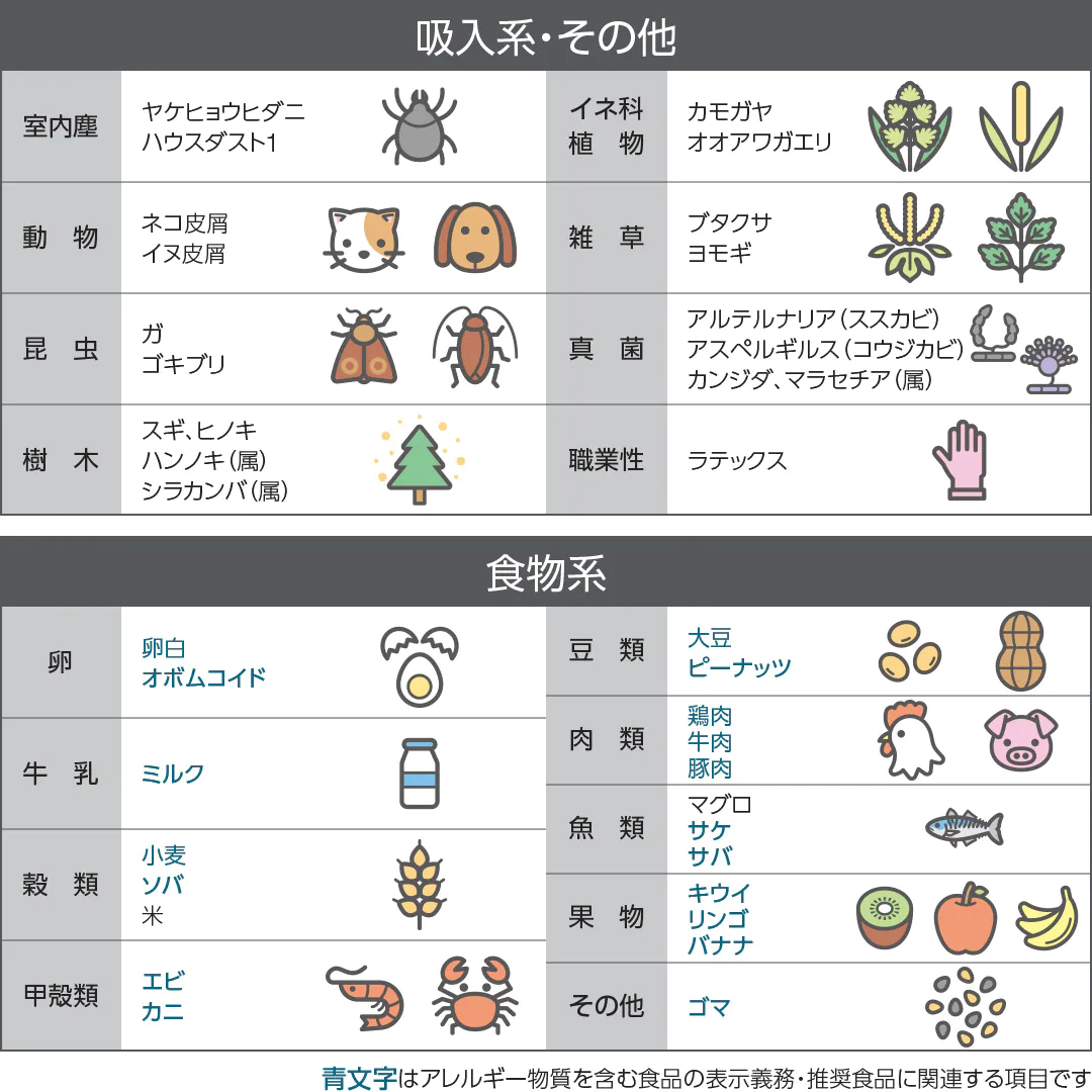 アレルギー検査の対象39項目
